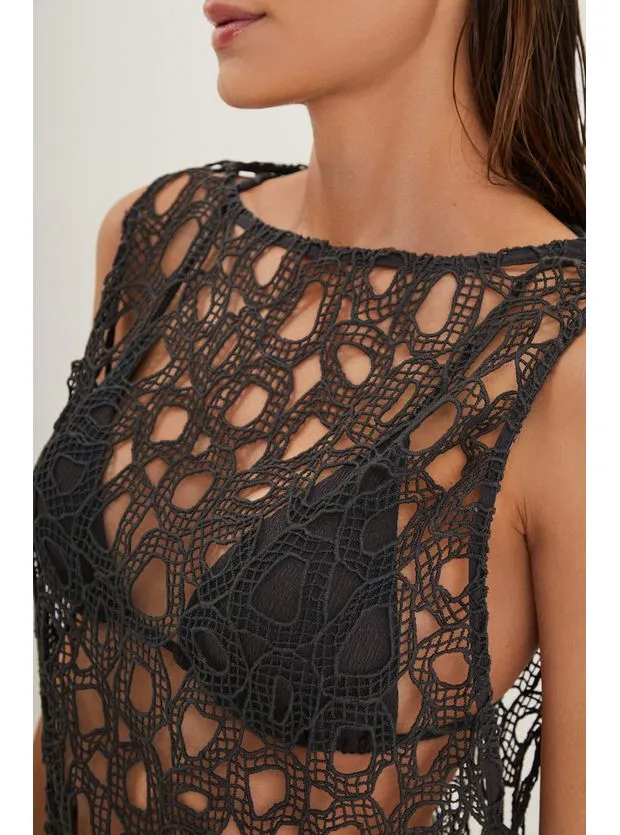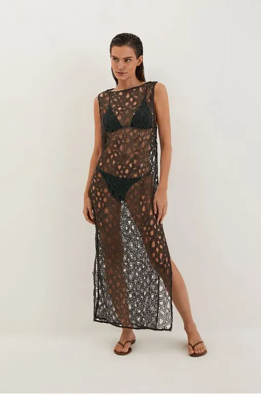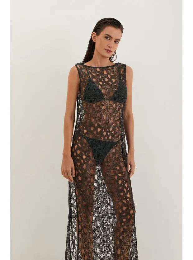 Em um jogo único de esconde e mostra, a saída de praia cinza Greta é feita de laise especial 100% algodão. Combine com o seu biquíni preferido, sandálias flats, bolsa de palha, chapéu e outros acessórios ViX Paula Hermanny.