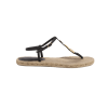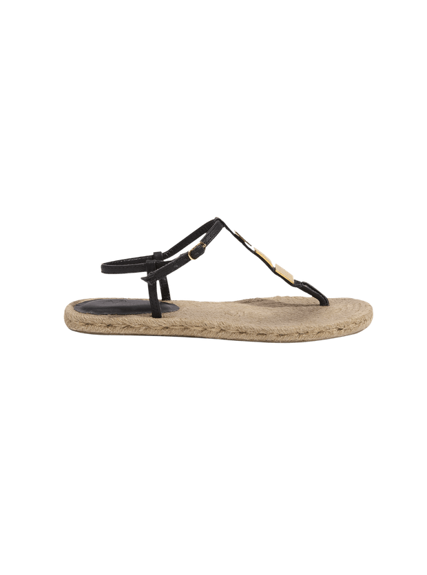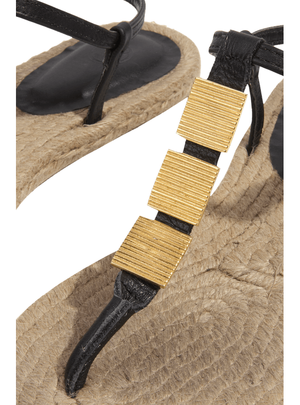 A sandália flat de couro preta Ainne é perfeita para combinar com vestidos, saias, shorts e calças ViX. – Tiras em couro – Aplicação de rebites dourados no centro – Solado em ráfia