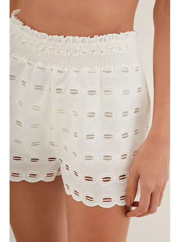 Leve e casual, o short branco Babi é feito de laise especial 100% algodão. Uma peça versátil para usar com seu biquini preferido, sandálias flats, bolsa de palha, chapéu e outros acessórios ViX Paula Hermanny.