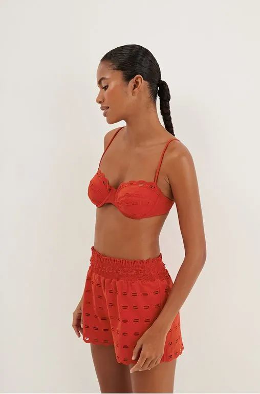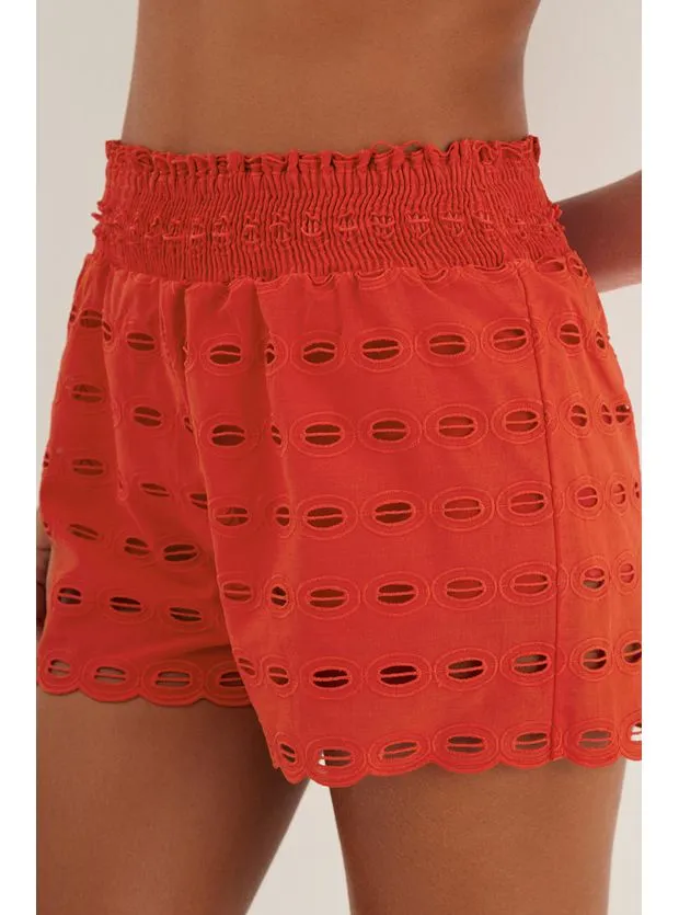 Leve e casual, o short vermelho Babi é feito de laise especial 100% algodão. Uma peça versátil para usar com seu biquini preferido, sandálias flats, bolsa de palha, chapéu e outros acessórios ViX Paula Hermanny. – Modelagem soltinha – Cintura média – Cós largo com lastex – Possui forro