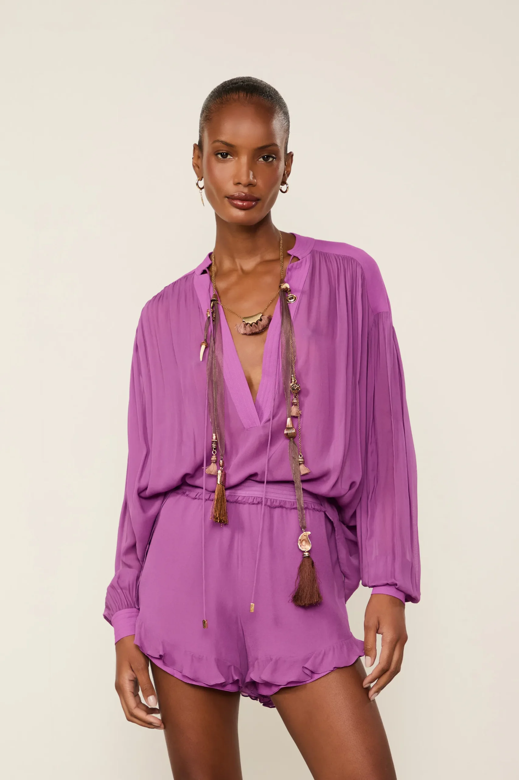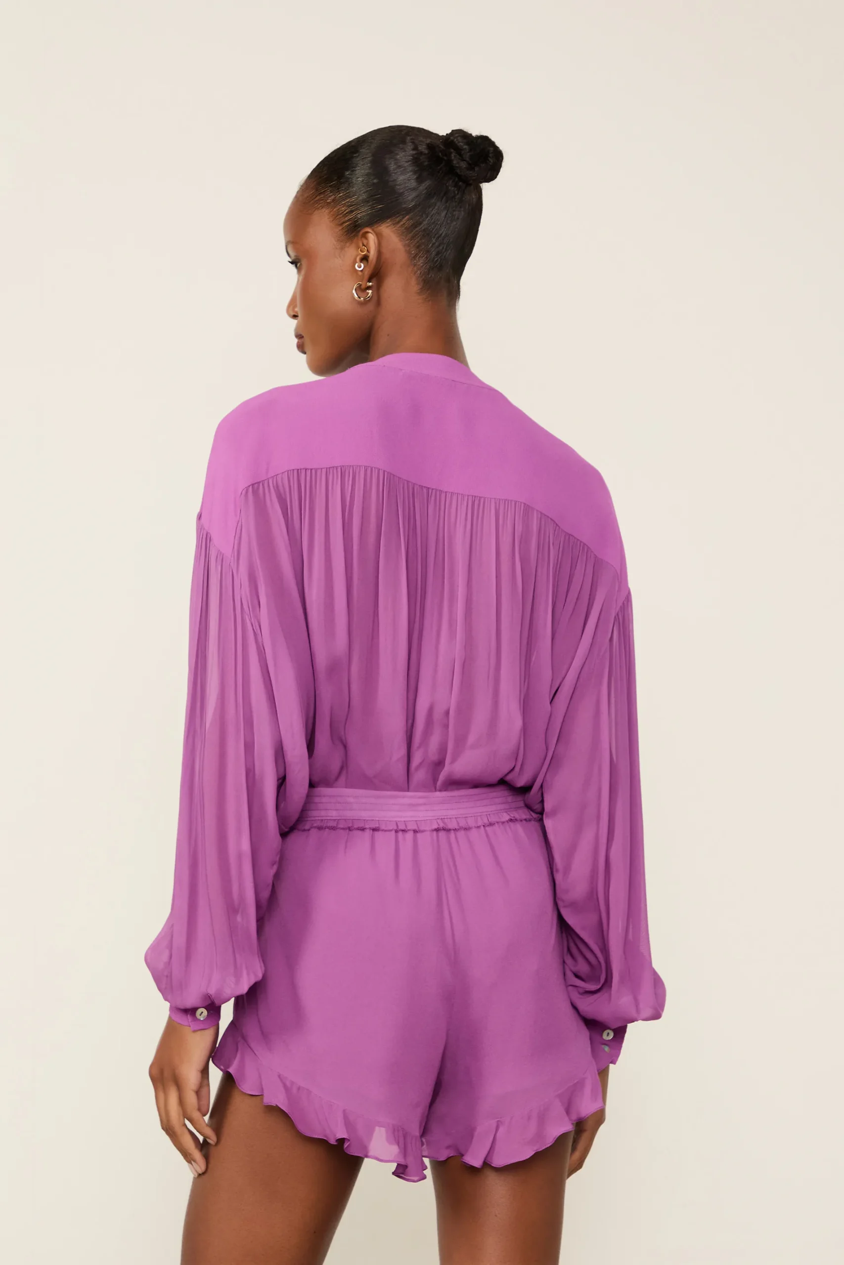 Short De Georgette Asa Delta Roxo Babados – Animale