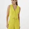 O short Remy é confeccionado em alfaiataria. A peça apresenta modelagem solta com cintura média e bolso anterior vertical, proporcionando um visual moderno e confy. Possui comprimento curto, forro solto, cós com passantes para cintos, zíper de nylon, botão interno, colchete de metal e acabamento pespontado.