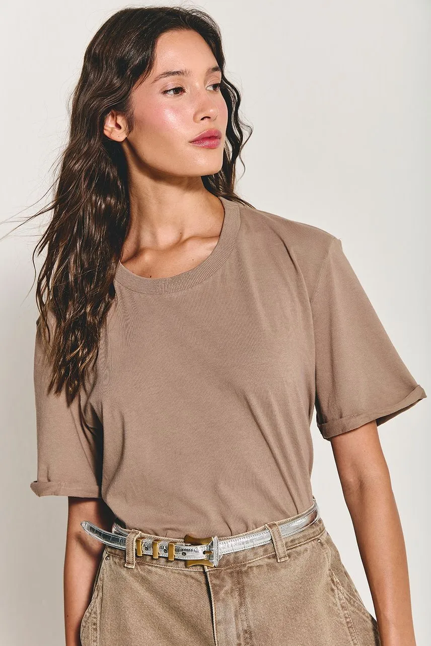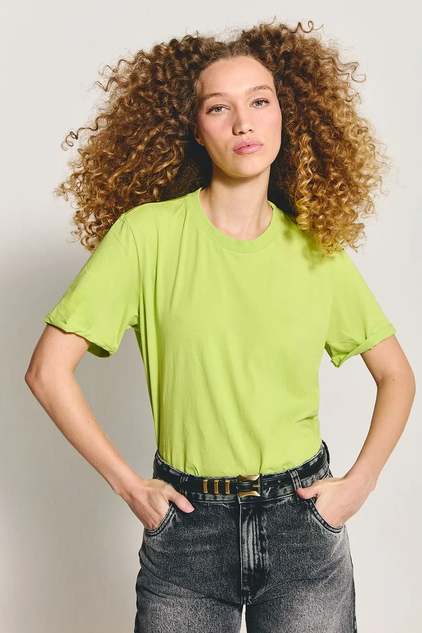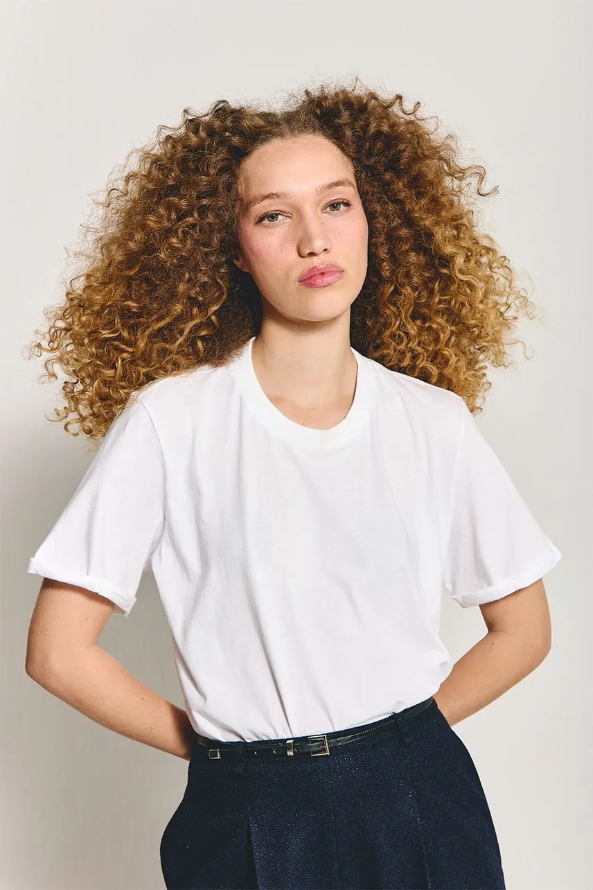 T-shirt feminina feita com malha 100% algodão, perfeita para quem busca um estilo confortável em uma peça básica e versátil. Com shape slim que valoriza a silhueta, essa t-shirt apresenta detalhes modernos como a dobra dupla na manga e gola ribana, conferindo um toque de despojado ao look