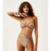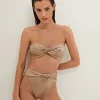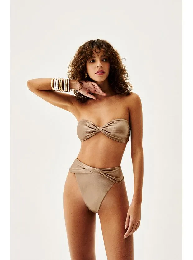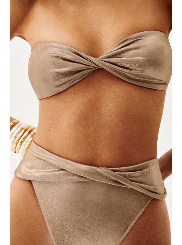 A modelagem Bandeau tem o top de biquini metalizada com efeito “push-up” e alça removível e regulável.