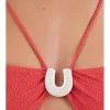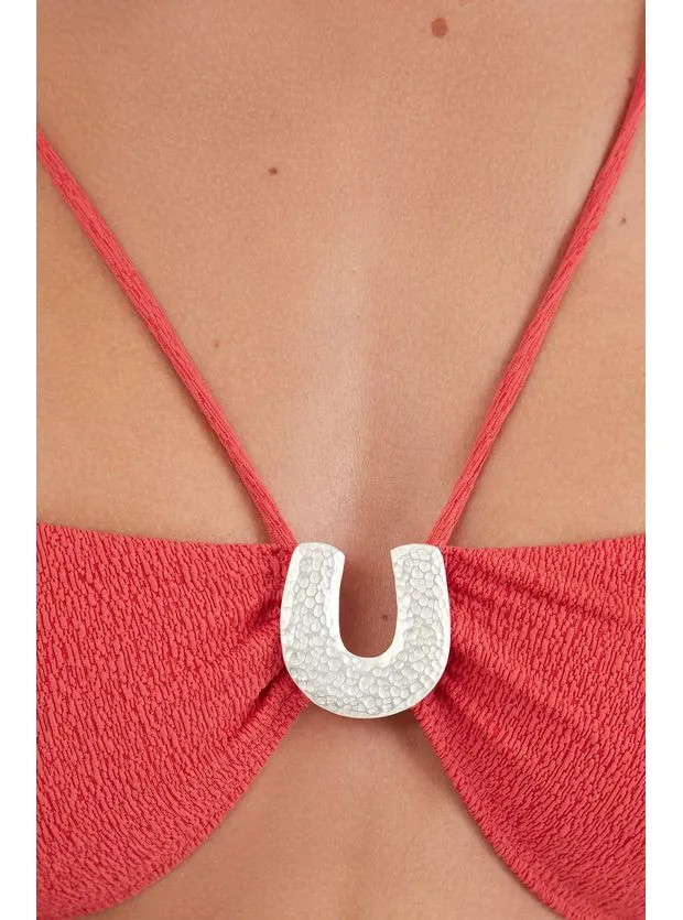 A modelagem Bandeau tem o top de biquini vermelho com alça de amarração no pescoço ou paralela. – Cobertura média – Bojo removível – Baixa sustentação – Fecho nas costas – Detalhes feitos à mão no ateliê ViX.