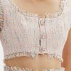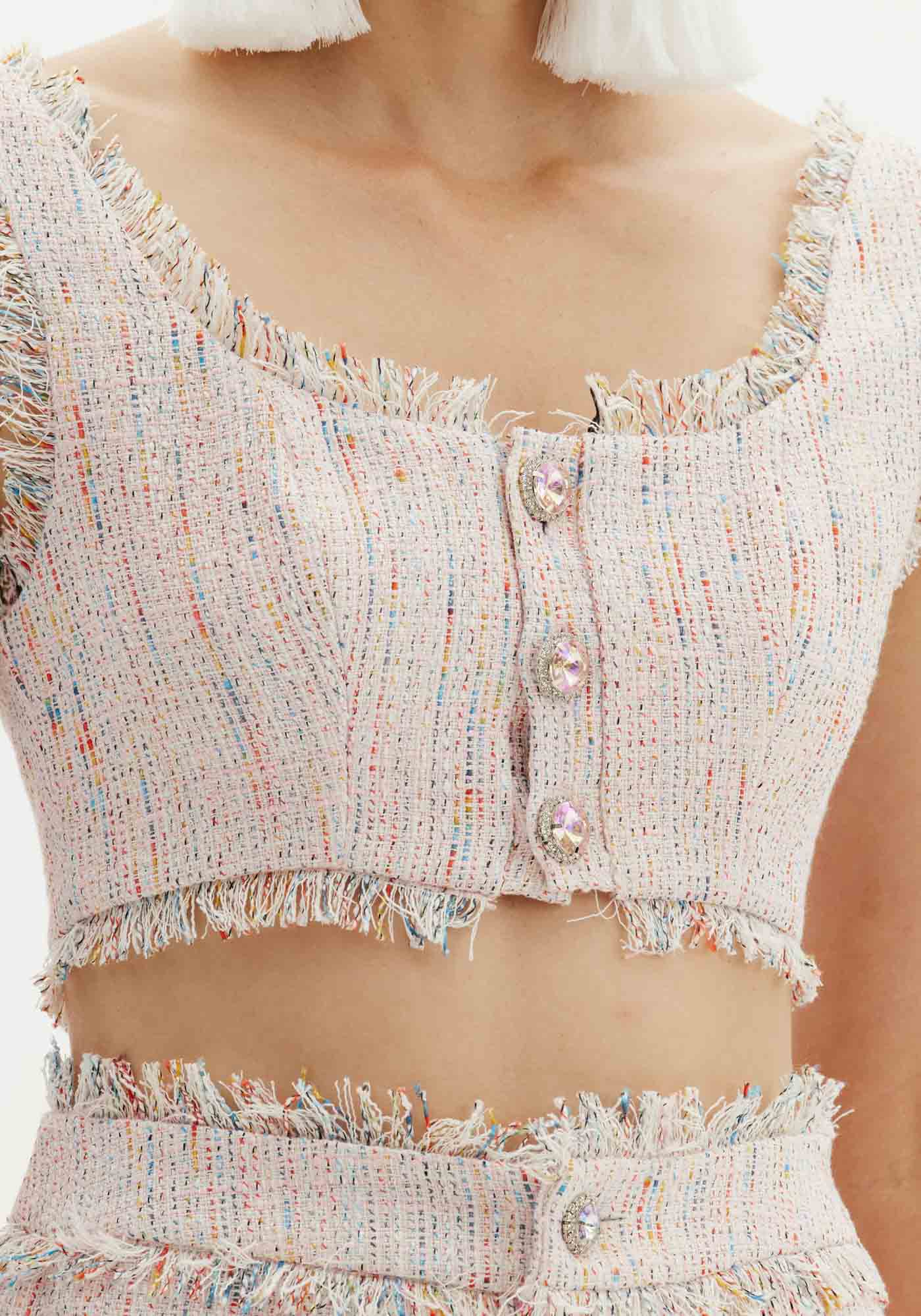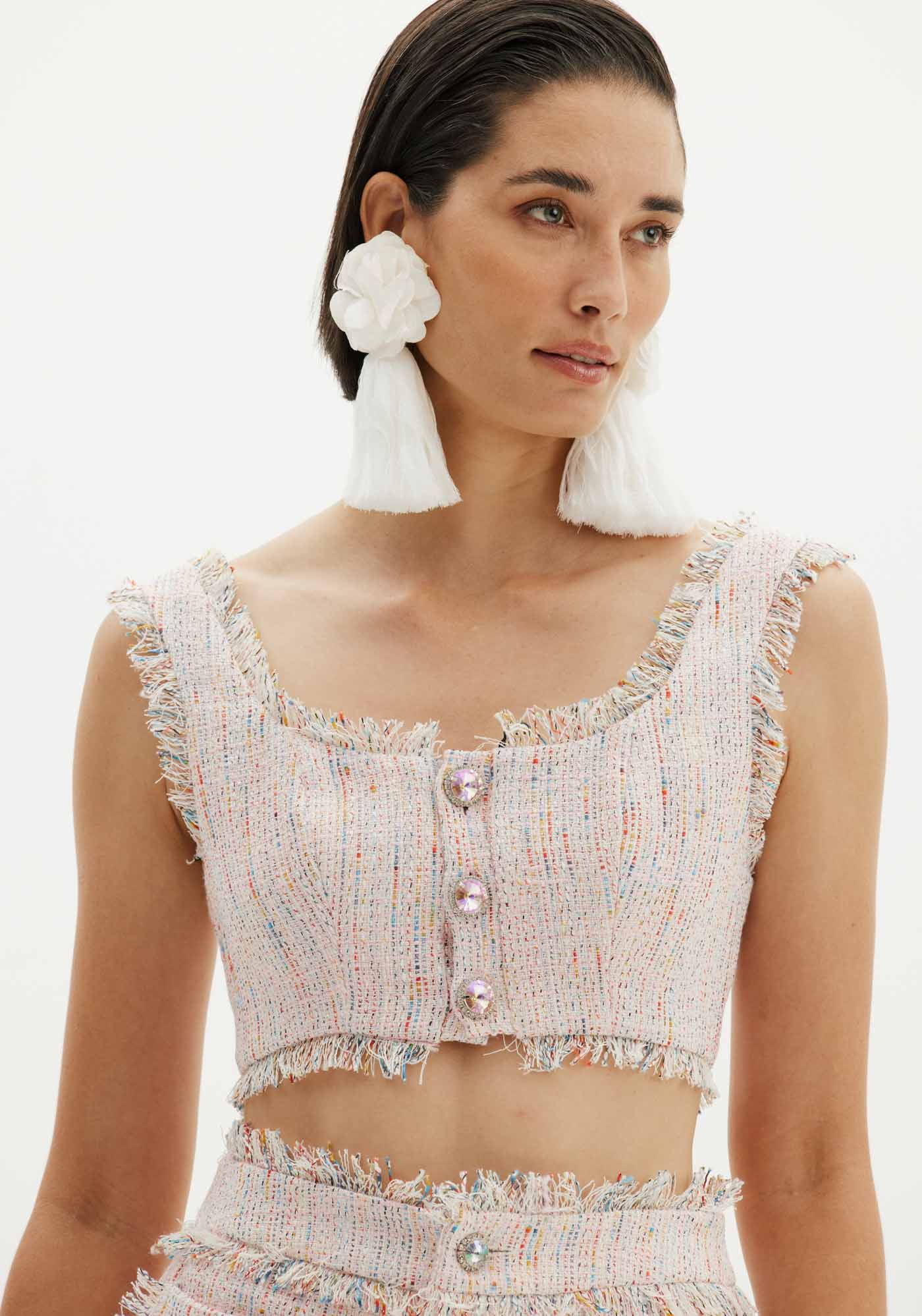 Diferente de tudo o que você imaginou, o top cropped de alças é uma peça elegante e cheia de detalhes. A peça ainda possui decote quadrado, fechamento em botões e acabamento desfiado. Amarante é uma marca elegante com notas românticas. A força, talento e paixão de Eduardo se materializam em peças que são verdadeiros monumentos que enaltecem a mulher brasileira. Um novo olhar e uma nova forma de se vestir.