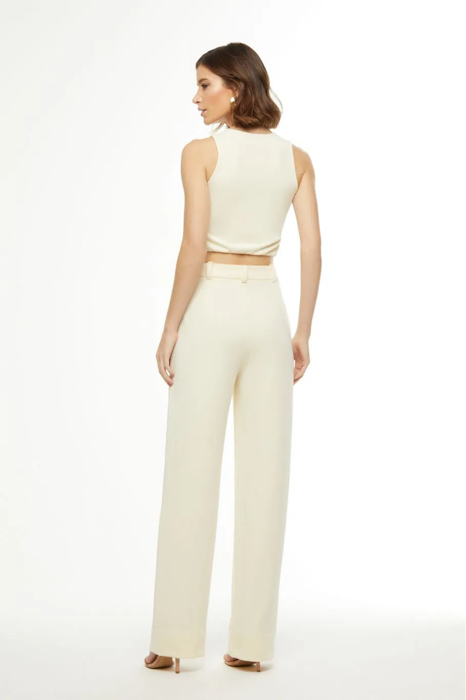 O top Duda é confeccionado em malha. A peça apresenta modelagem justa com decote redondo, proporcionando um visual moderno. Possui comprimento de cropped, cavas de regata, forro embutido e acabamento pespontado.