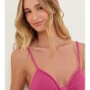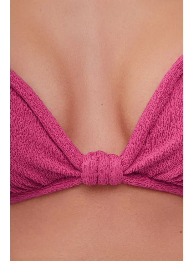 A modelagem Erin tem o top de biquini rosa estilo bandeau, com amarração nas costas proporcionando alta sustentação.