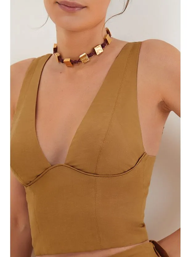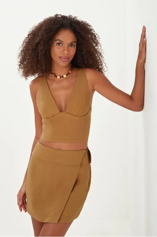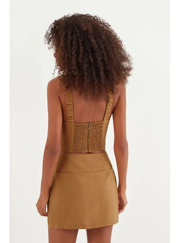Versátil, o top bege Gail é uma peça que combina com calças de cintura alta, saias e shorts da coleção. Experimente usá-lo com sandálias, bolsas e outros acessórios ViX. – Alças largas – Decote V – Pala larga na cintura – Detalhe de viés contornando abaixo do busto – Zíper destacável nas costas Detalhes feitos à mão no ateliê ViX