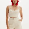 O top Nancy é confeccionado em acetato. A peça apresenta modelagem justa no comprimento de cropped, proporcionando um visual comfy and cool. Possui alças finas, forro embutido, barbatanas anterior, leve decote, zíper invisível posterior e acabamento pespontado.