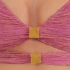 Em equilíbrio perfeito entre o delicado e bold, o detalhe Spencer tem um acessório quadrado com textura em listras verticais. Novidade no Swim, a lycra com textura especial traz um leve degradê em alto relevo. A modelagem Selena tem o top de biquini rosa com uma faixa abaixo do busto até as costas, dando efeito de recorte. – Alças paralelas reguláveis – Fecho nas costas – Bojo removível – Média sustentação – Detalhes feitos à mão no ateliê ViX