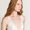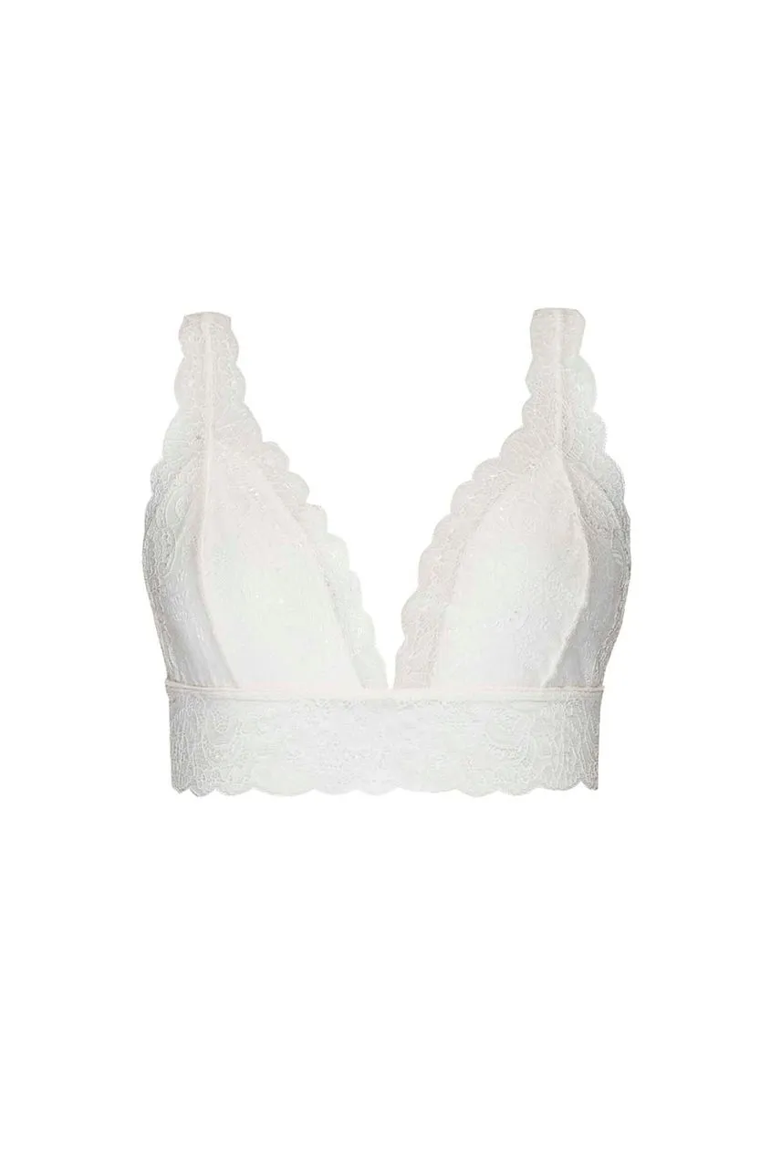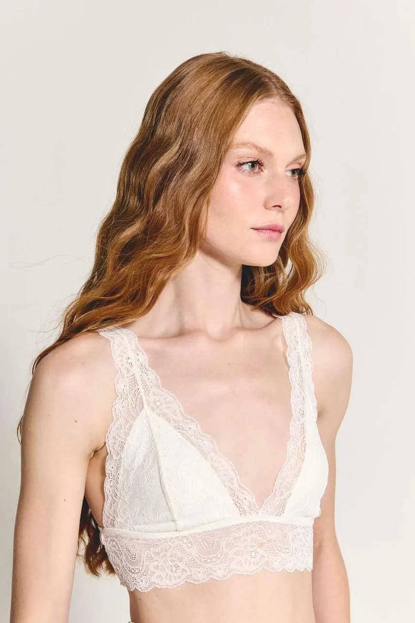 Top de renda modelo triangular com alças reguláveis. Não possui fechamento, apenas elástico.