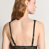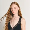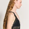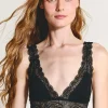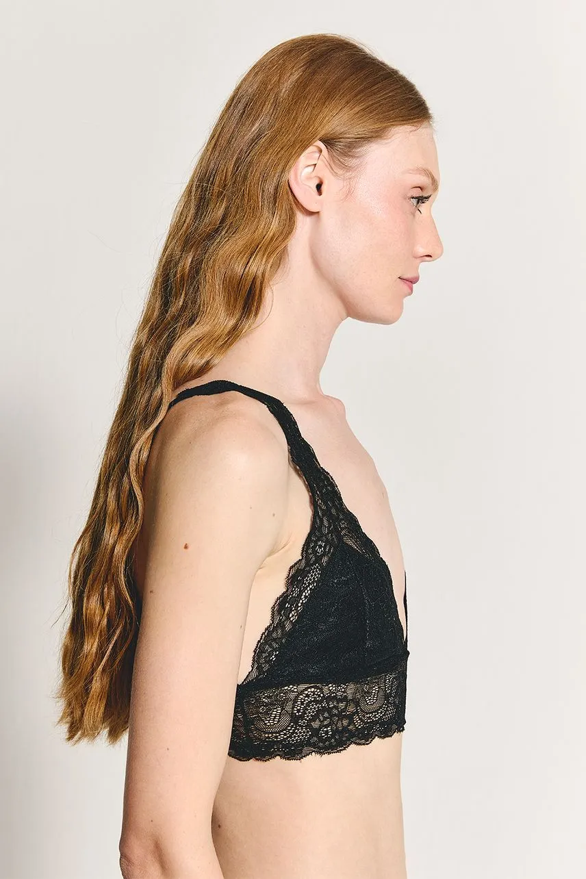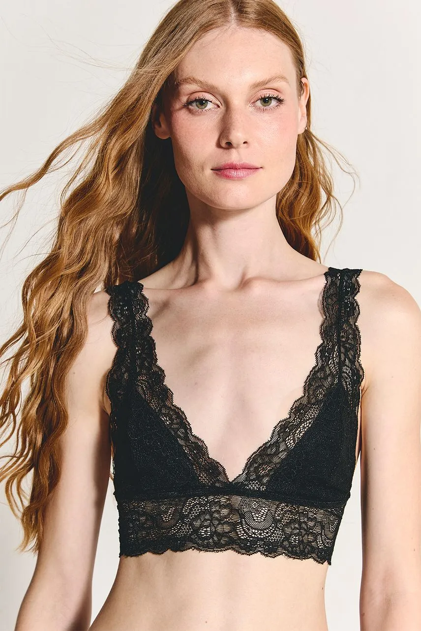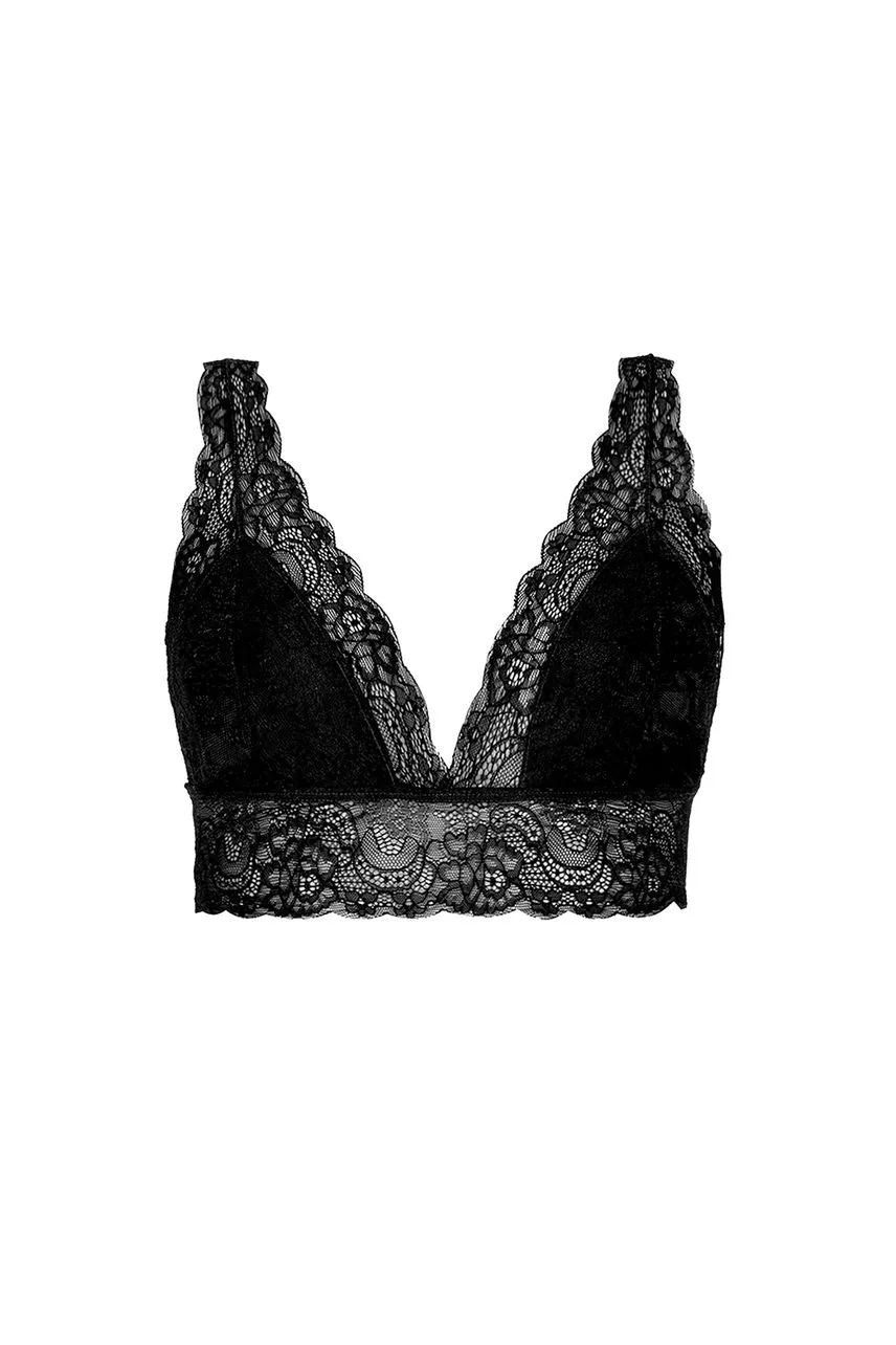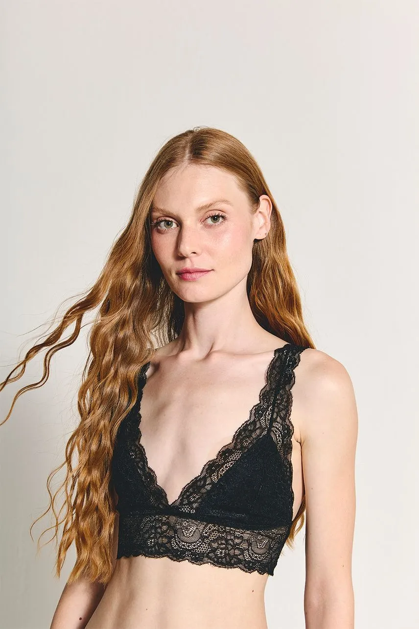 Top de renda modelo triangular com alças reguláveis. Não possui fechamento, apenas elástico.