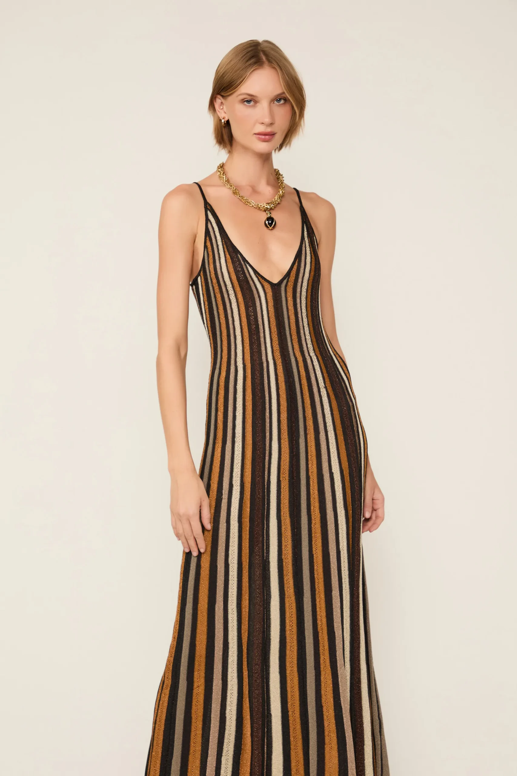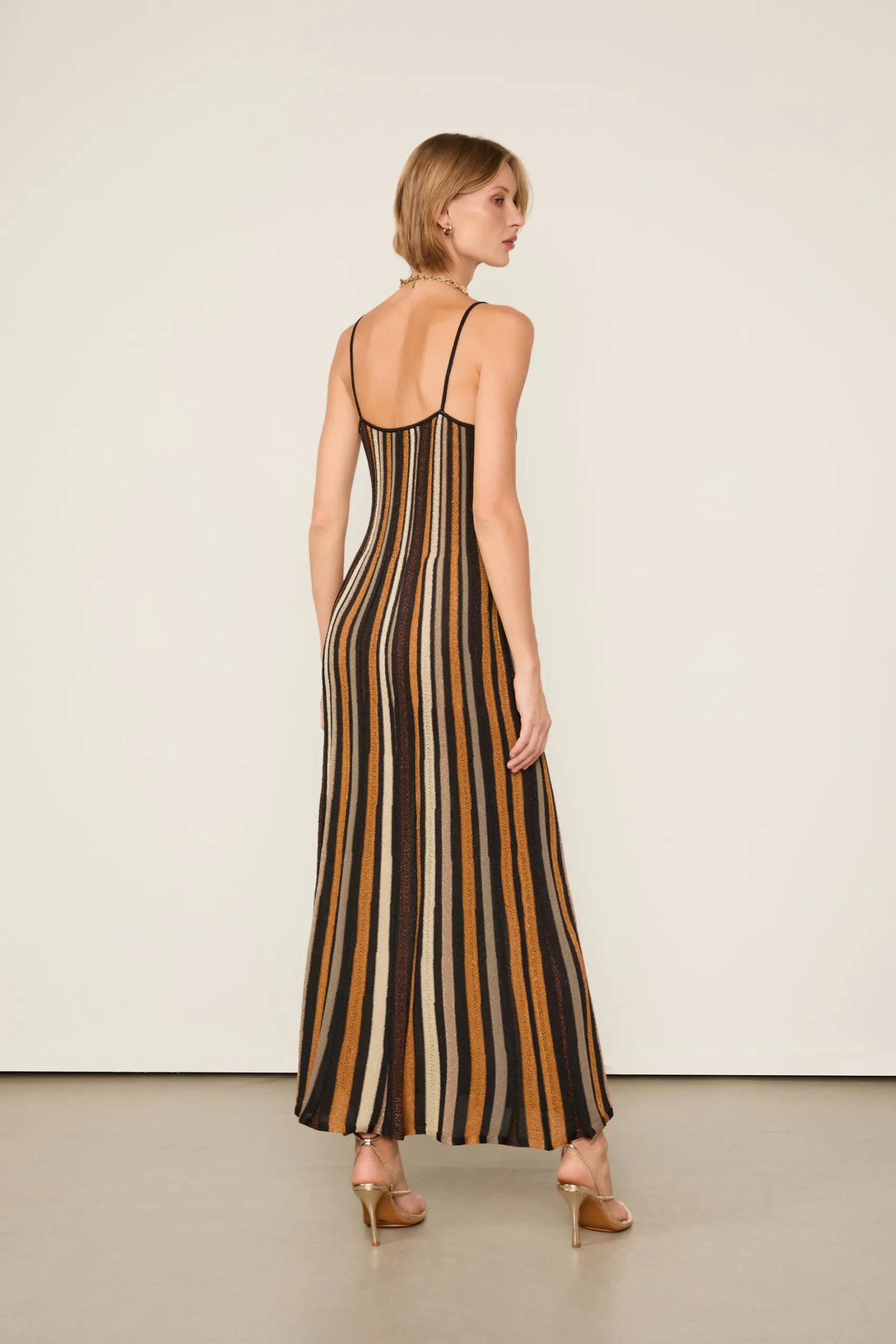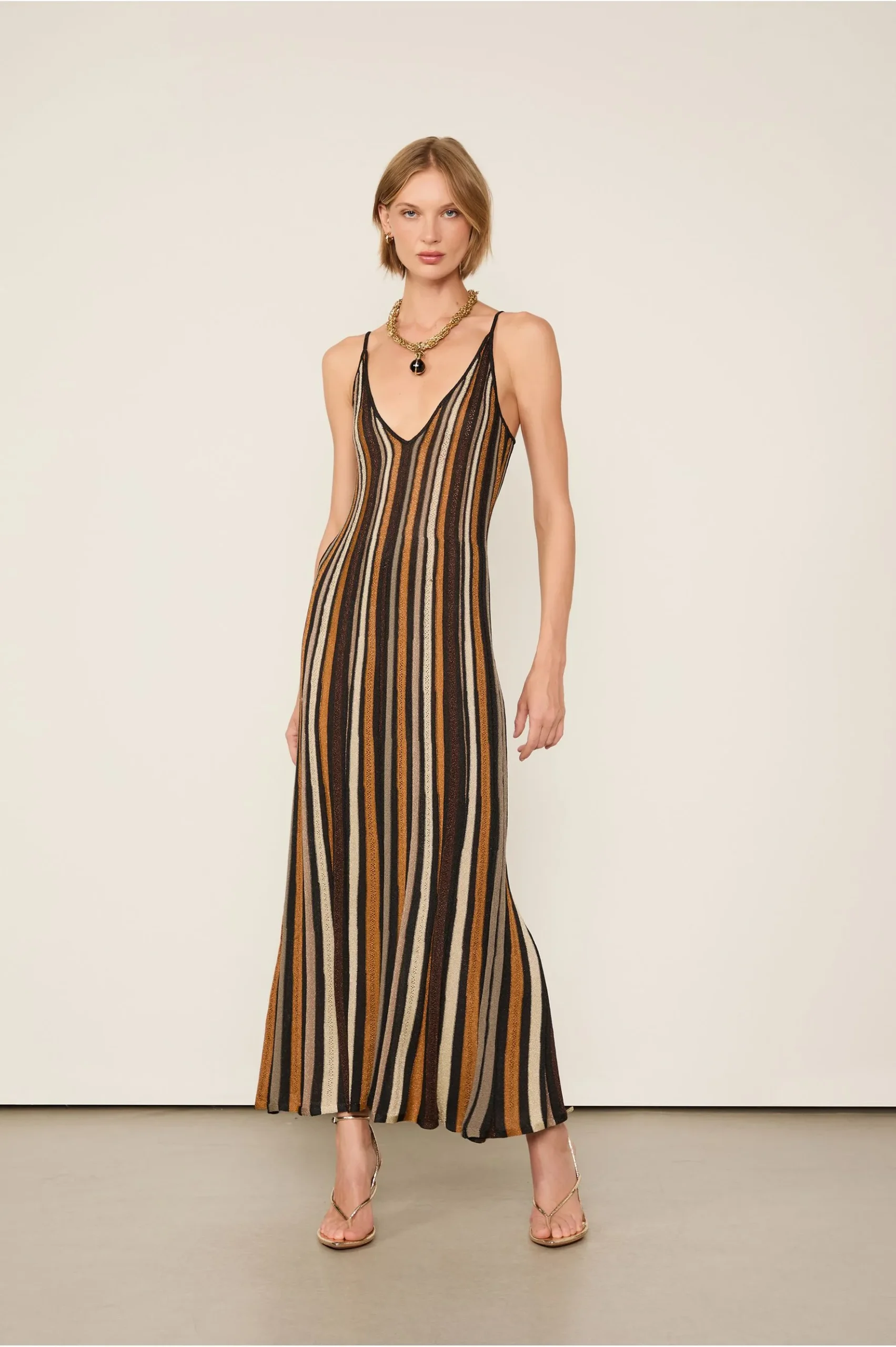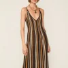 Vestido De Tricot Longo Decote v Com Listra Detalhes Lurex – Animale
