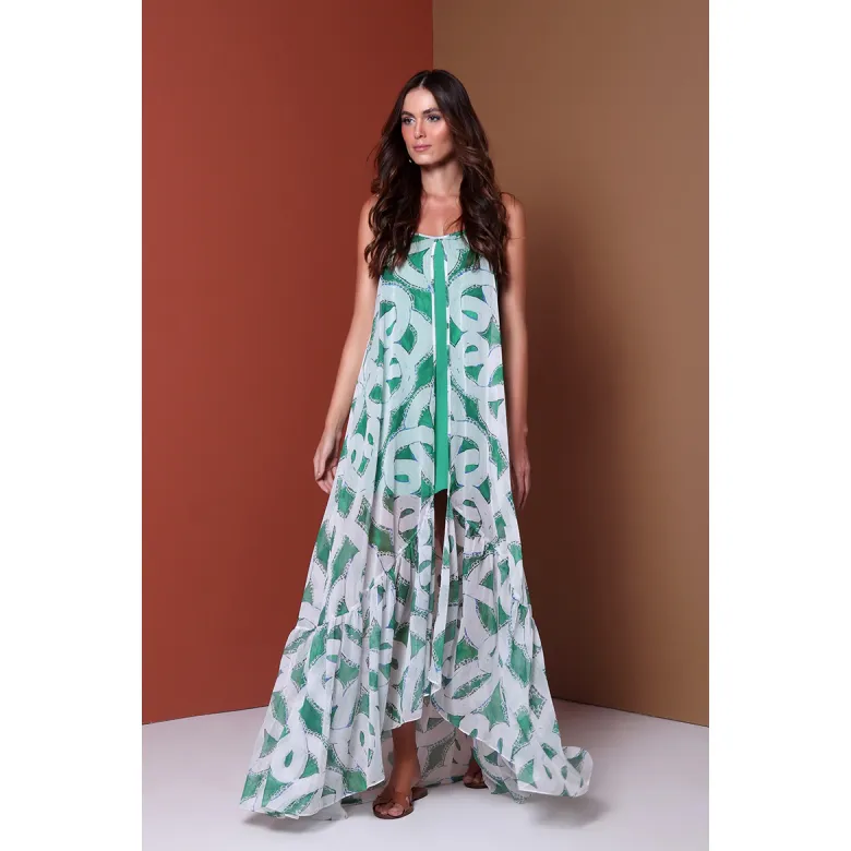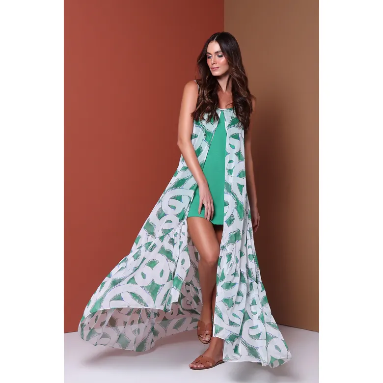 O vestido duplo é um modelo confortável, com uma leve e elegante abertura na frente.