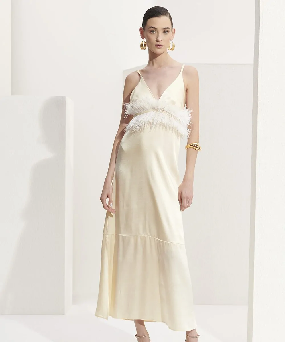 Dicas da LINI: O vestido Éternelle é uma escolha elegante para quem valoriza leveza e presença discreta. O cinto define a silhueta de forma natural, enquanto as pregas trazem fluidez e feminilidade, criando uma produção equilibrada e atemporal.