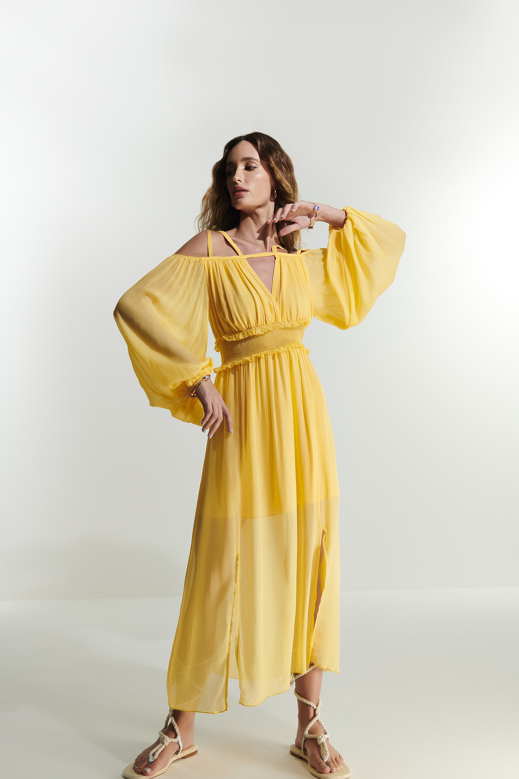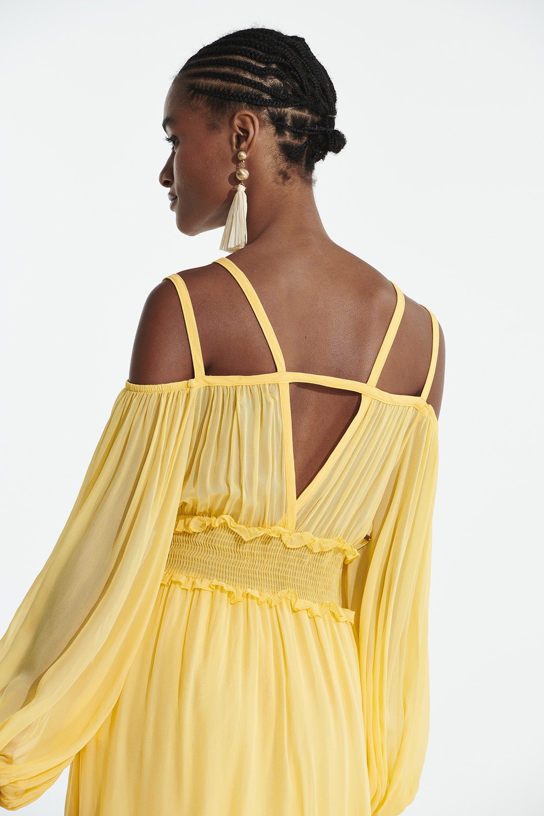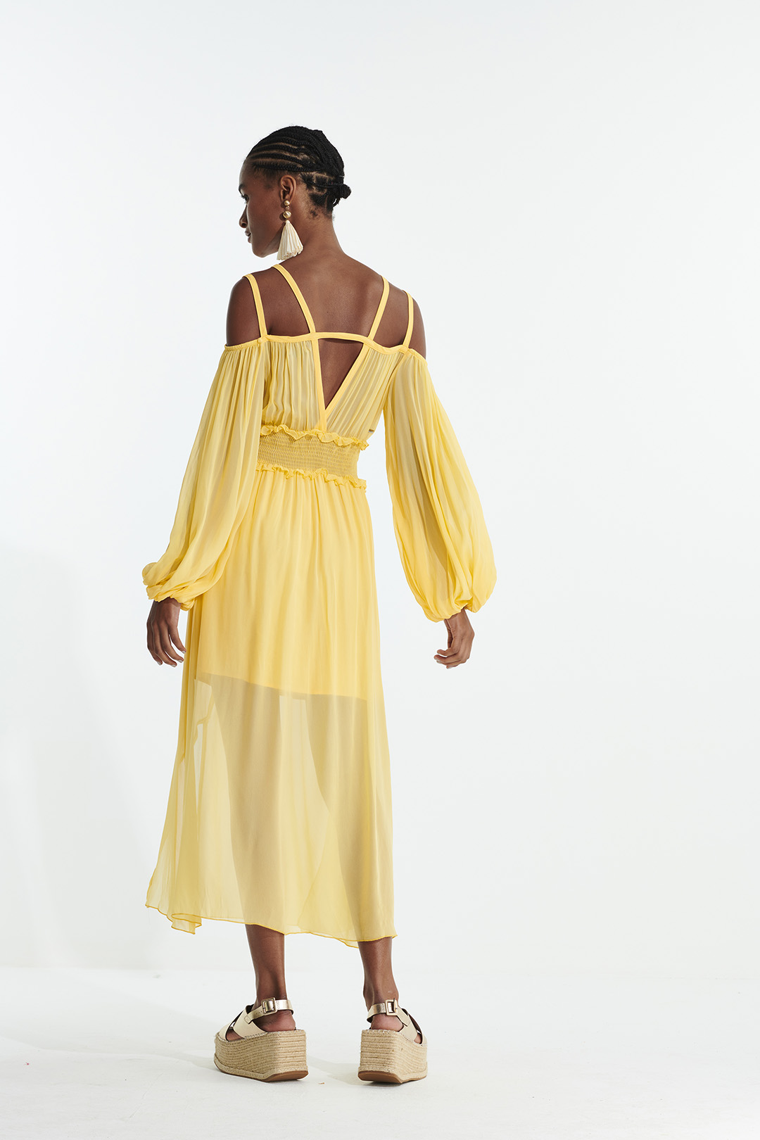 Vestido Fluido Recortes Simétricos L’cecci Amarelo Shine