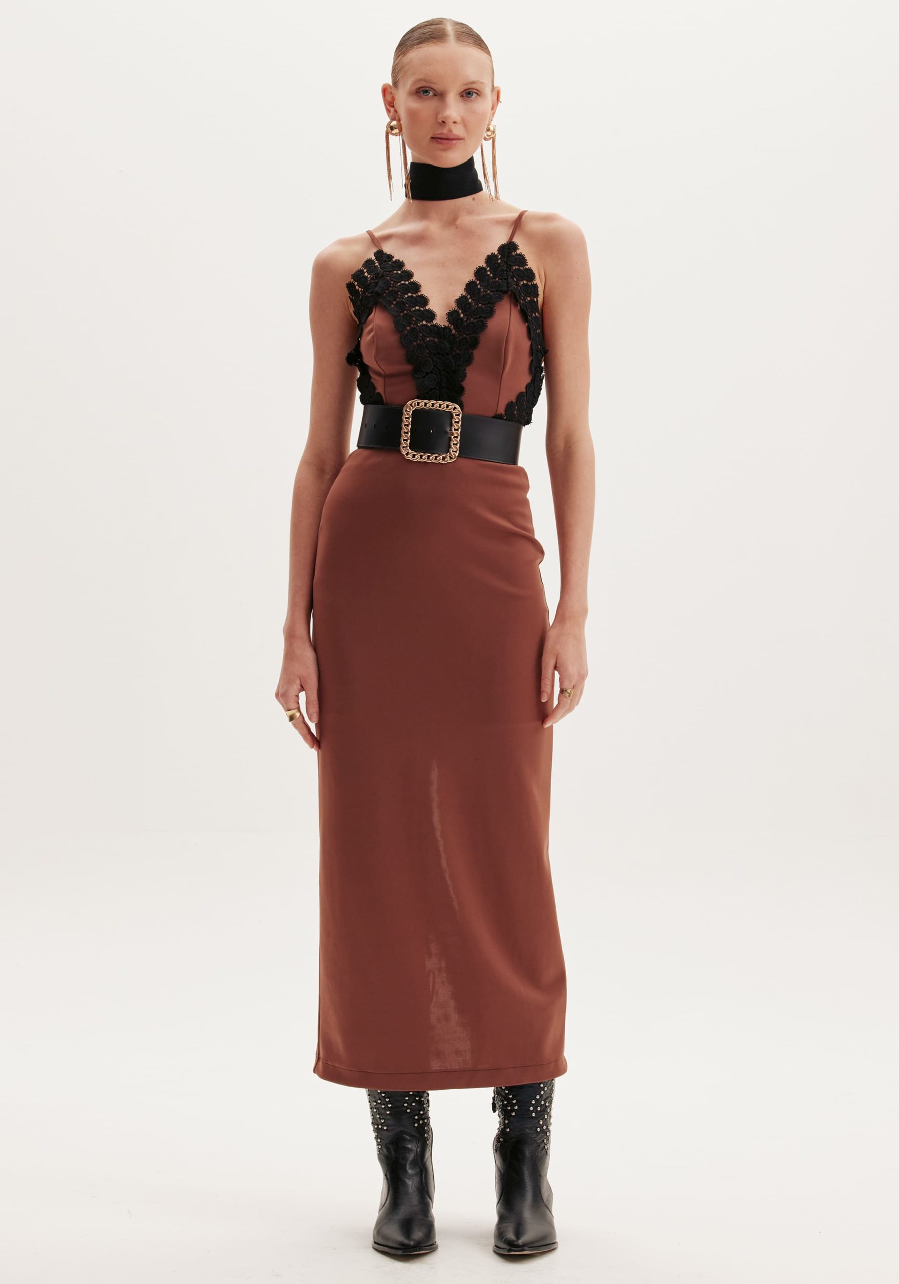Vestido Longo com Detalhe em Renda – Amarante Do Brasil