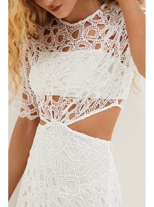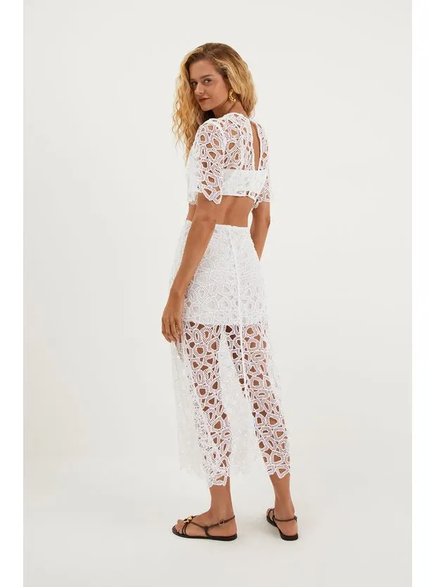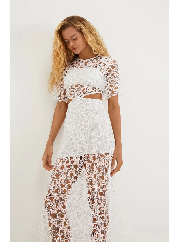 Cool, o vestido longo branco de laise Joelle é uma peça que atrai o olhar. Leve seu look do dia para noite com flats, sandálias altas, bolsas e outros acessórios ViX.