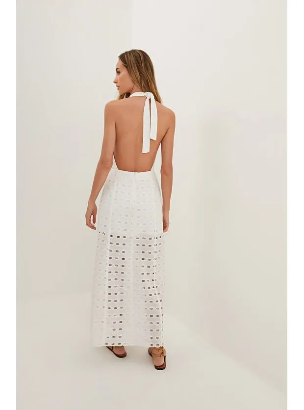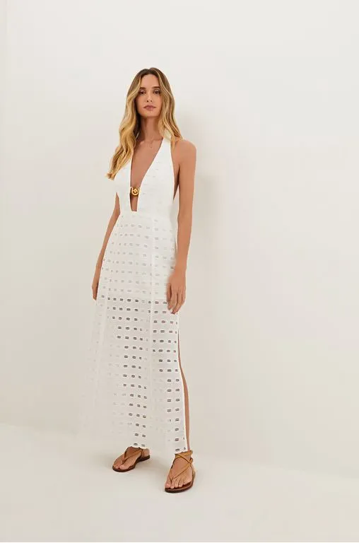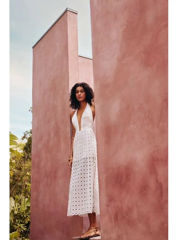 O vestido longo de laise branca Maryse é a peça perfeita para ter por muitos verões. Leve seu look do dia para noite com flats, sandálias altas, bolsas e outros acessórios ViX.