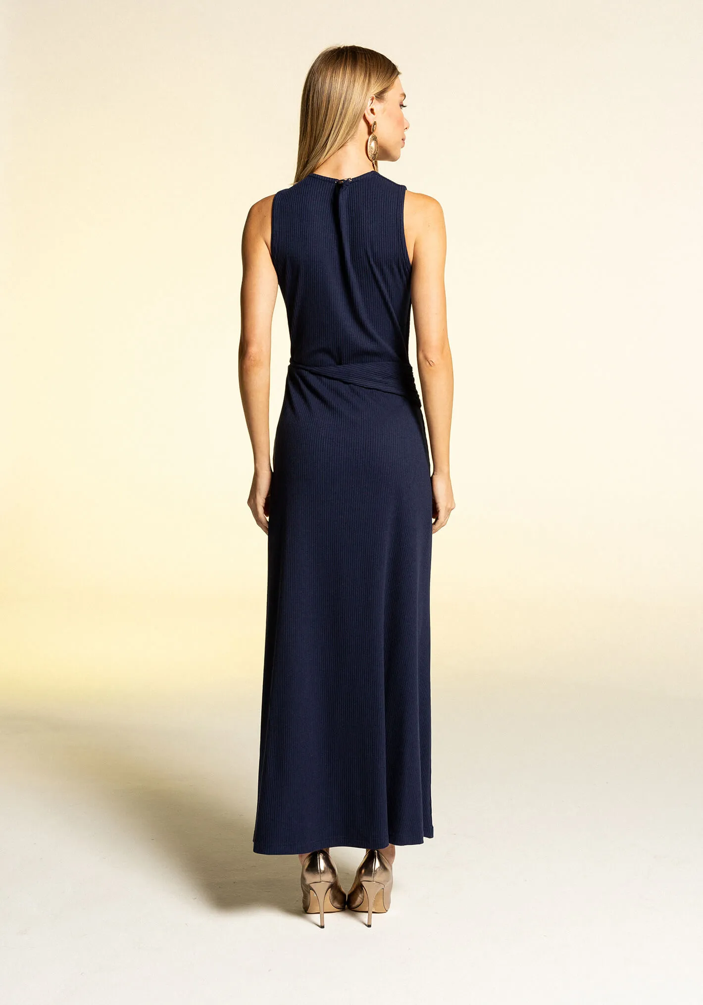 Este vestido midi é a escolha perfeita para um look elegante e confortável. Confeccionado em malha canelada, o tecido proporciona um caimento suave e se ajusta delicadamente ao corpo. O decote em V valoriza o colo e alonga a silhueta, enquanto a modelagem regata oferece liberdade de movimento. A peça é acinturada, destacando a cintura de forma elegante, com um detalhe em metal dourado que adiciona um toque sofisticado ao vestido. Sua modelagem ampla garante um caimento fluído e confortável, proporcionando um visual leve e despojado. Ideal para diversas ocasiões, este vestido é versátil e cheio de estilo.