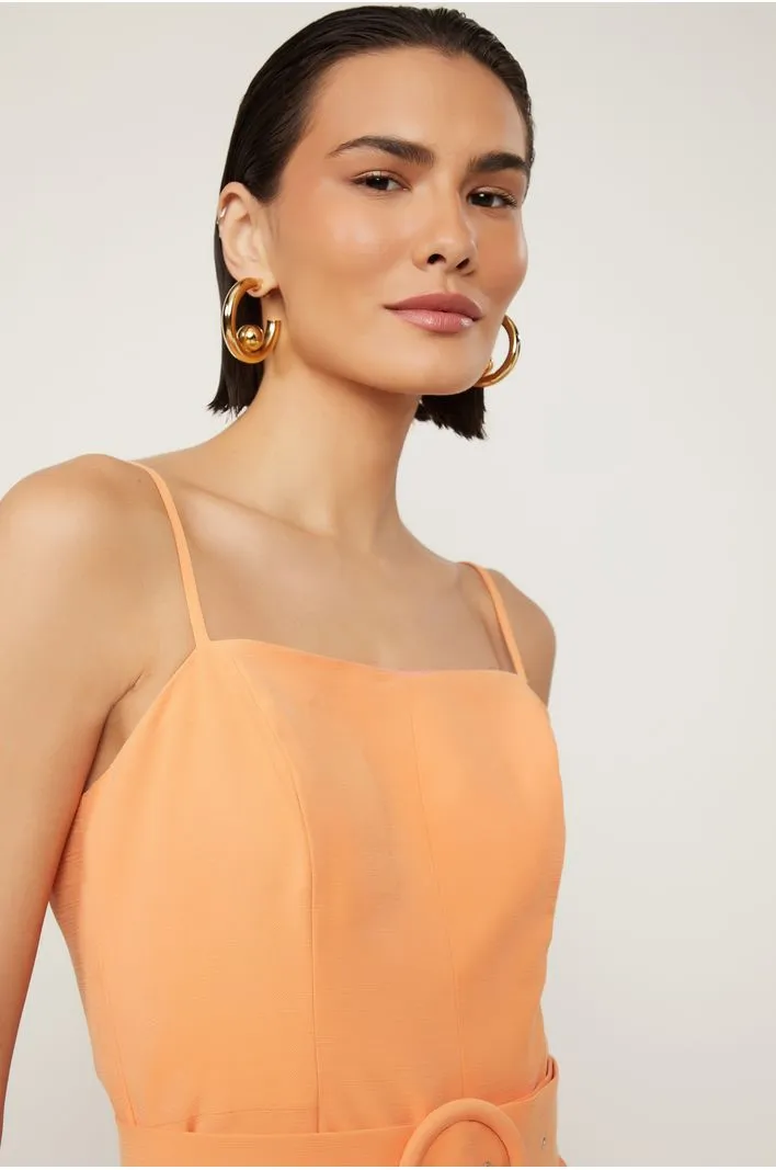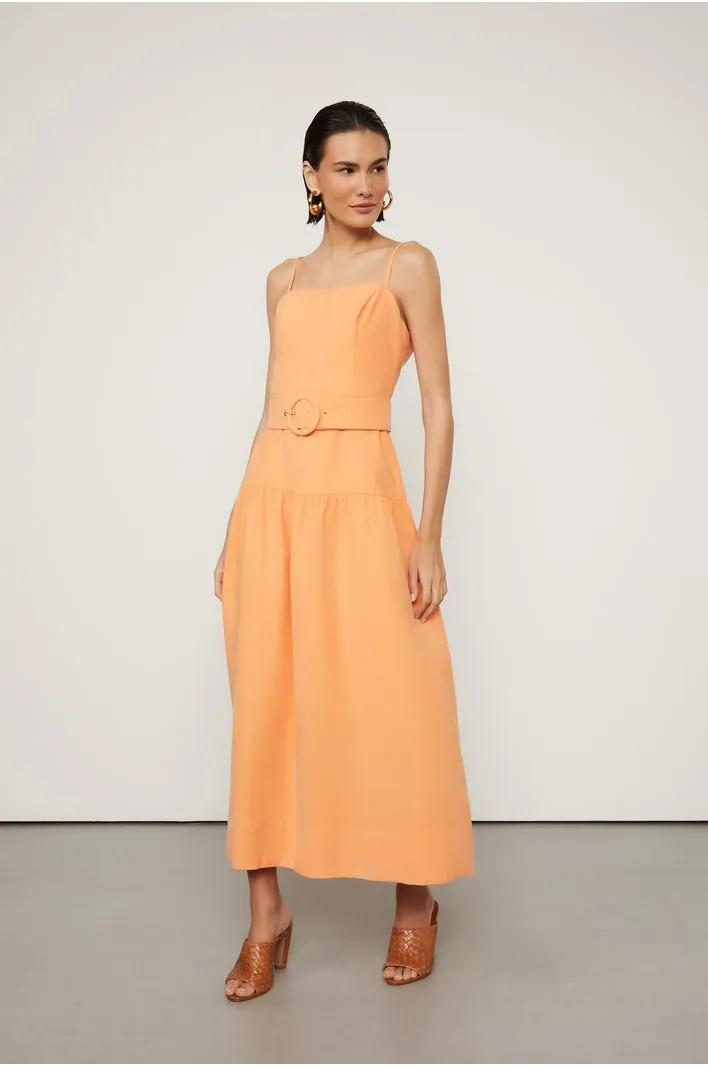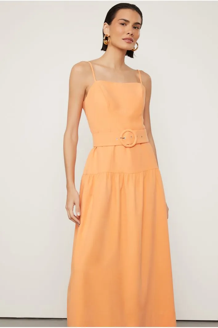 Vestido Midi De Alça Decote Reto Acinturado e Saia Ampla Com Cinto – Animale