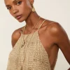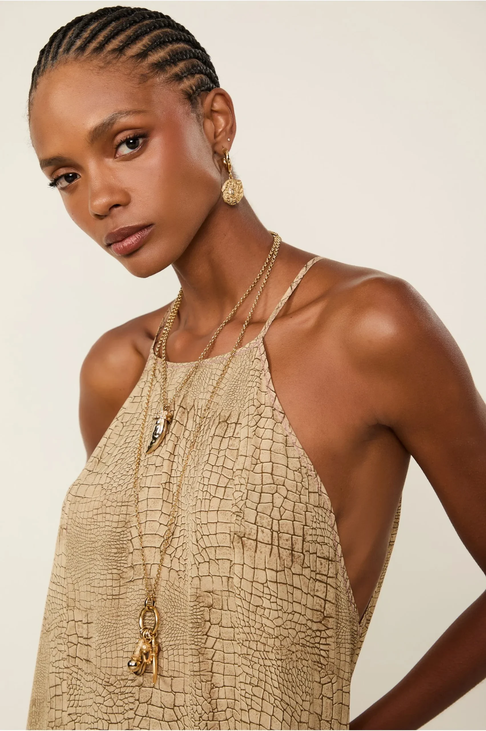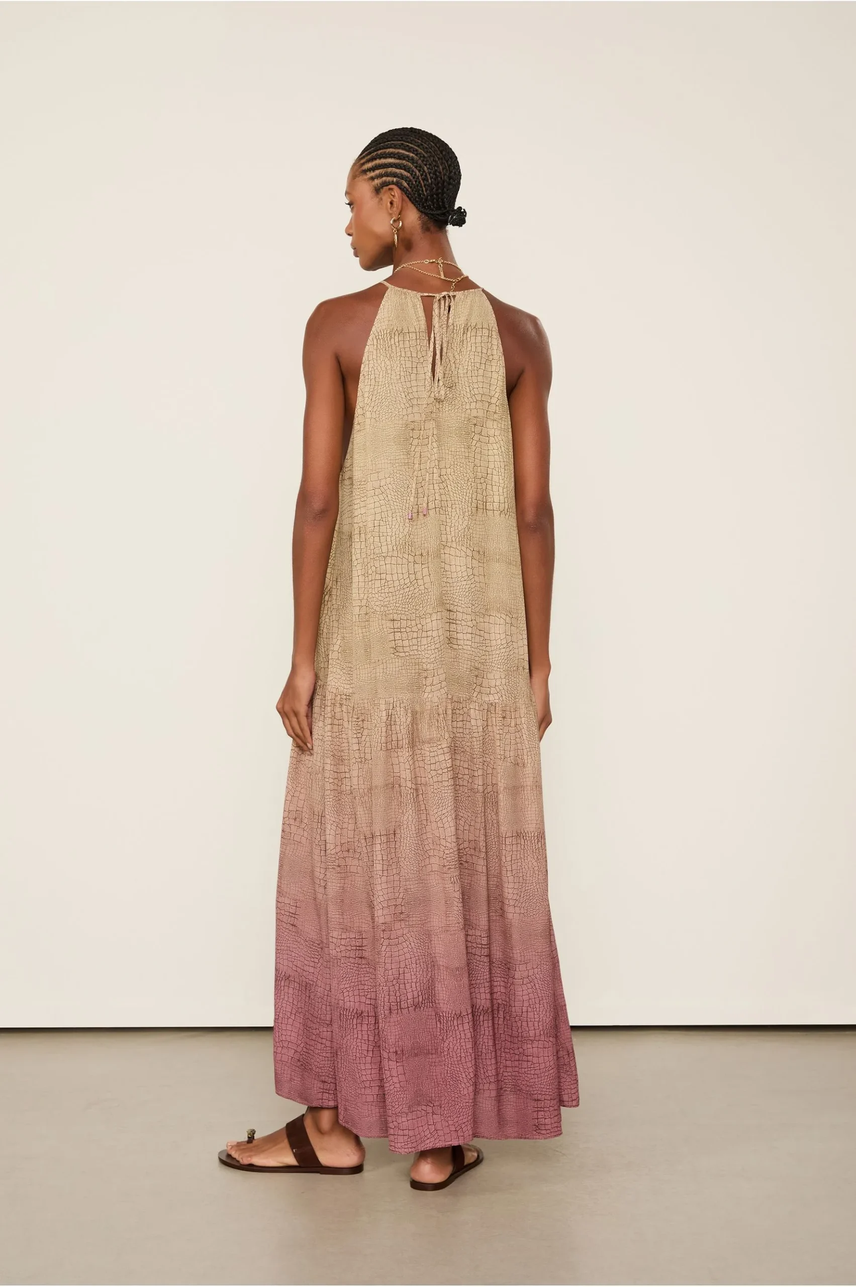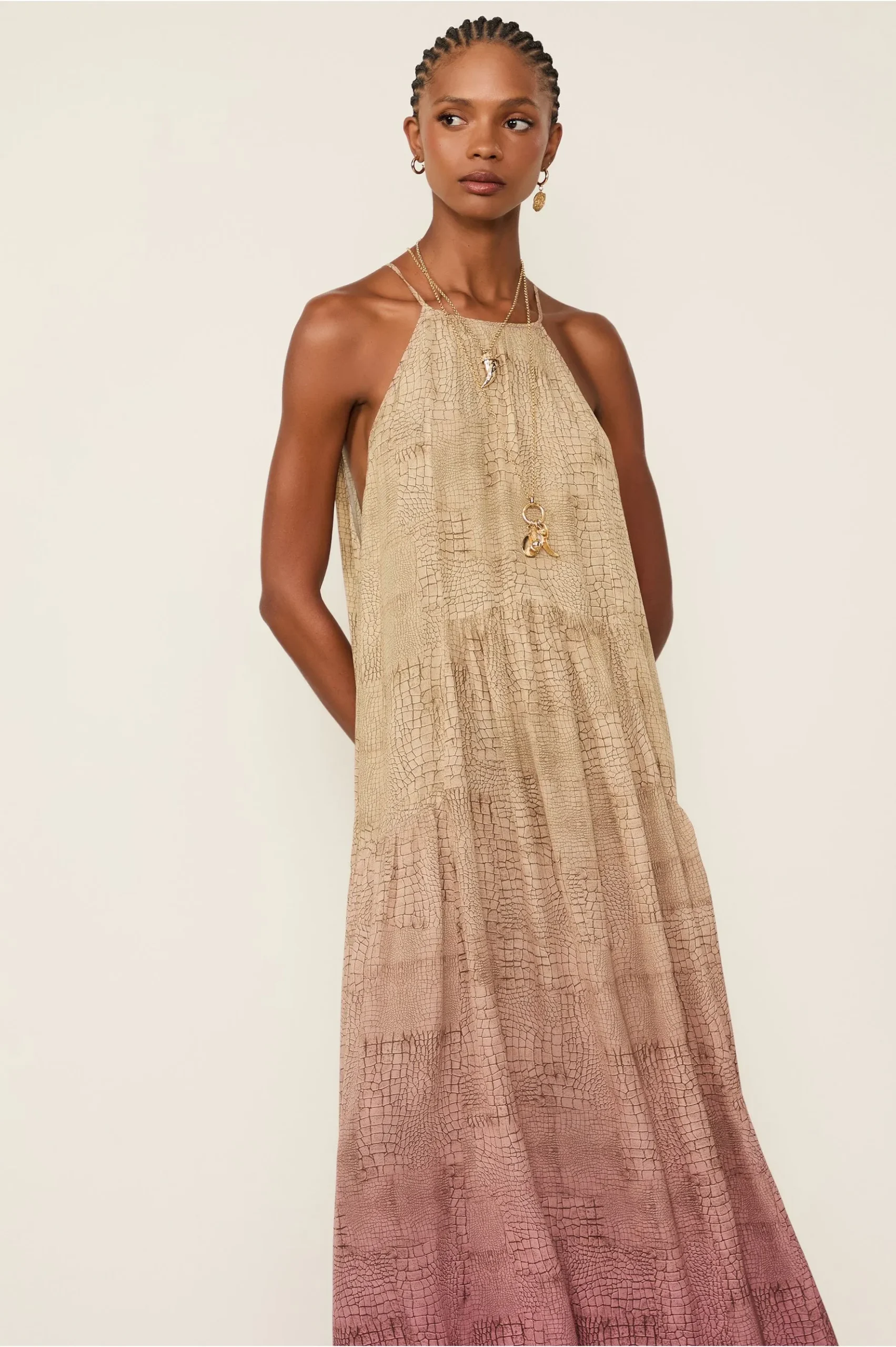 Vestido Midi Estampado com decote reto e alças reguláveis por amarração com recorte nas costas. A peça também apresenta shape fluido. Uma escolha autêntica para a temporada.