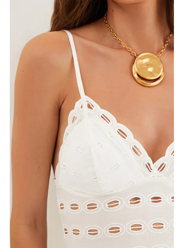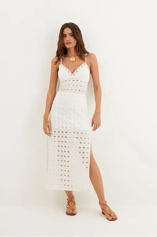 Figure-flattering, o vestido midi branco Raya é a escolha perfeita para te acompanhar aonde você for. Leve seu look do dia para noite com flats, sandálias altas, bolsas e outros acessórios ViX.