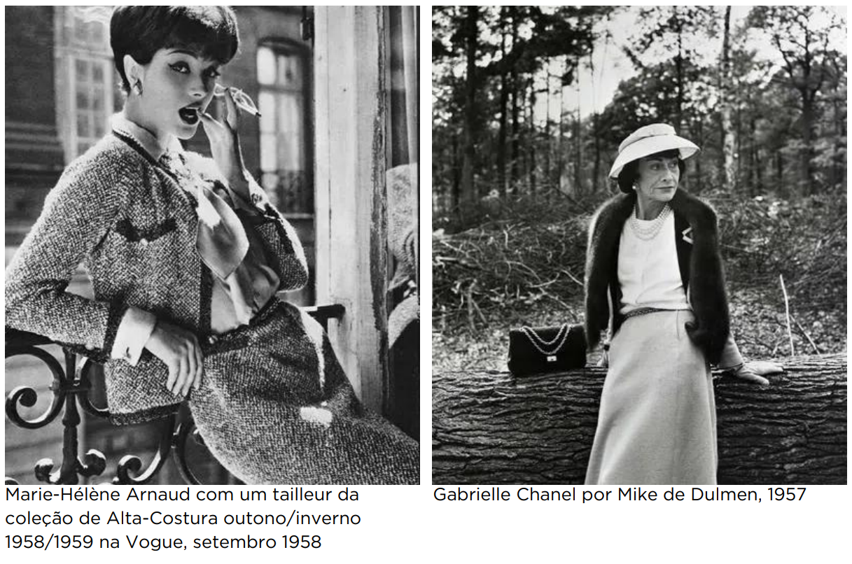Em 1954, ela utilizou o tecido para confeccionar uma de suas criações mais famosas, que se tornou sua marca registrada: o Tailleur Chanel, composto por casaco e saia. O casaquinho da Chanel se tornou uma febre e um exemplo de atemporalidade dentro do universo fashion, agregando prestígio e posicionamento à marca, além do apelo da revolução feminina para o contexto da época.